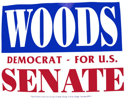 Charles Woods, overcame the scars of a fiery World War II plane crash and went on to business success.  In 1992 Mr. Woods ran for US Senate against Harry Reid, D-Nev.  Barbara and Dan Williams actively campaigned for Mr. Woods.  Charles got 48364 votes to incumbent Harry Reid's 64828 statewide.  Senator Harry Reid lost in his home town of Searchlight, where we not only lived, but organized the candidate's town-hall meeting.